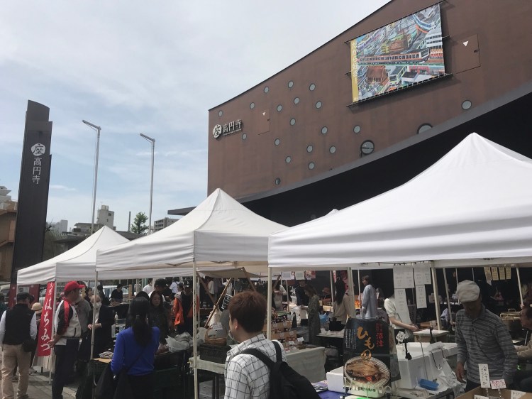 座・高円寺の劇場入り口広場でところ狭しと開催される食のマルシェです。